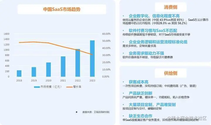 原因是什么呢?我们从SaaS的供给侧和消费侧分别进行了分析,大致原因如下: