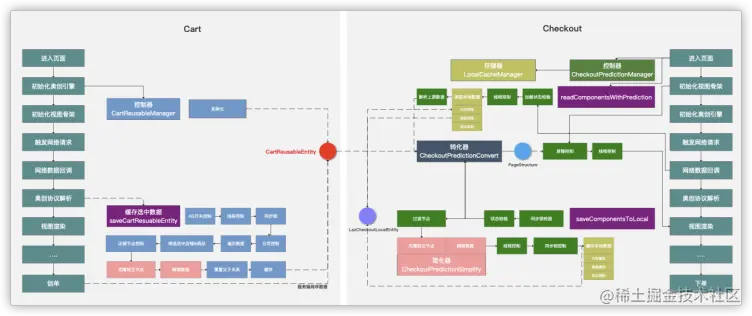 通过对年度同期数据的对比,我们发现相对于202004 Checkout Render接口耗时在860ms上下浮动,2021同期时间段已经上涨为1160ms上下增幅35%,鉴于Checkout日益增长的网络耗时,客户端推动了Checkout首屏渲染缓存项目,主要目的在于通过复用上级页面数据和本地缓存数据快速渲染页面首屏视图,降低用户在空白加载期间的等待焦灼感。