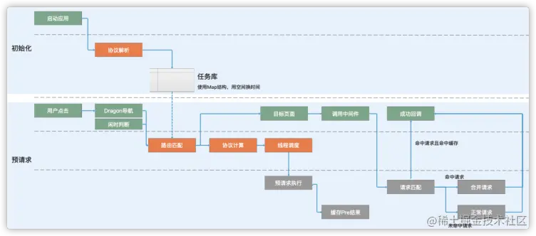 - 闲时预加载 智能调度:基于用户行为预测,利用当前页面空闲时间,提前加载下个预测页面的资源;强制调度:无行为分析,利用当前页面空闲时间,提前加载下个配置页面的资源。