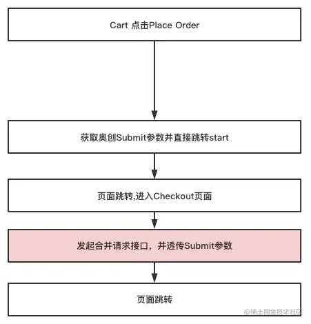 基于后置合并,我们协同服务端提供一个基于 mtop.lazada.carts.ultron.submit 和 mtop.lazada.buy.renderorder 的合并请求接口,在不修改原接口内部逻辑的基础上,服务端封装一个上层接口开放给端侧使用。请求的发起节点调整到进入下单页面,也就是点击下单按钮后直接进入下单页面&将Cart选中数据透传过去,并在下单页面进行请求;调整后,Cart.Submit承载的失败场景将直接挂在Checkout页面。