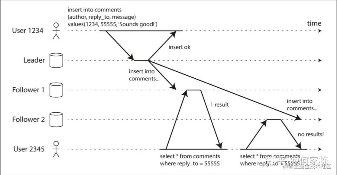 当多条数据有因果关系的时候(比如说两次有因果关系的购物数据),加上主从数据库之间存在数据同步延迟,读取到数据的顺序和实际写入的数据并不一样