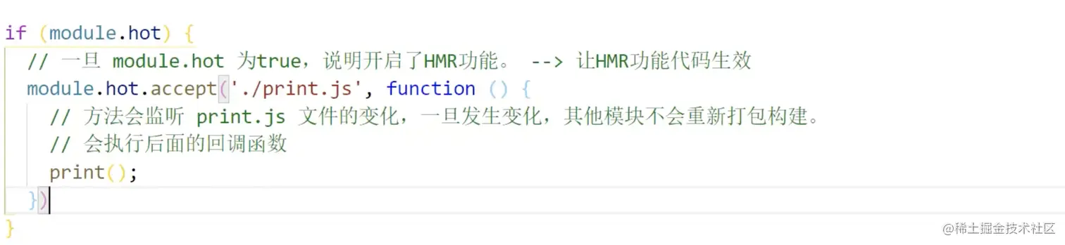 HMR功能的代码【注意:HMR功能对js的处理,只能处理非入口文件的其他文件】