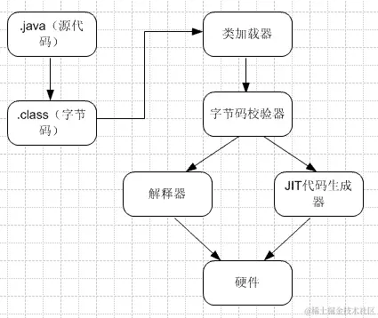 Jvm是java虚拟机,其实它就是解释器,把Class文件中的命令转成某种平台的命令,比如把Java命令转成Windows下的命令,然后Java程序就执行了.