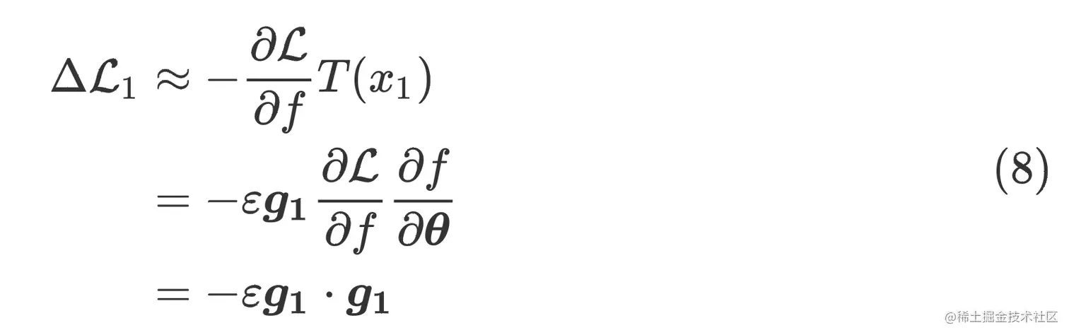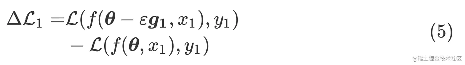 类似的,参数根据样本(x1,y1)更新后,在样本(x2,y2)上的损失差为ΔL2=−εg1⋅g2