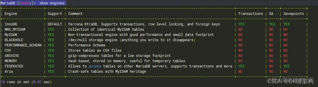 花最多的时间去深入学习的对象,收益肯定比将时间平均花在每个存储引擎的学 习上要高得多。所以 InnoDB 引擎也将是我们学习的重点。