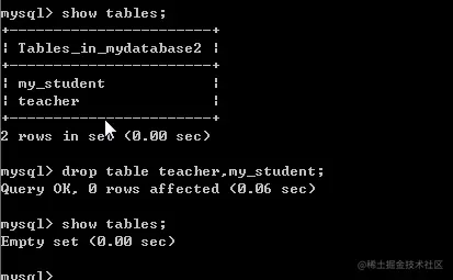 基础语法:drop table 表名[,表名2…],可以同时删除多个数据表