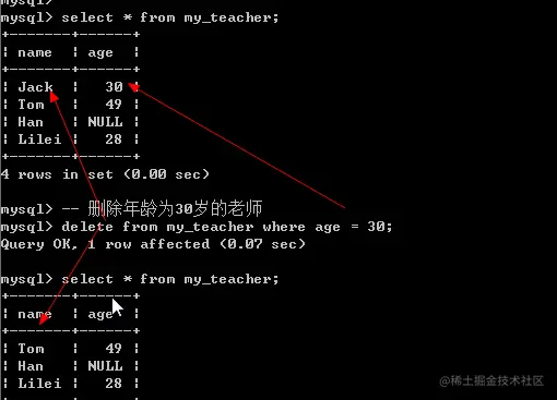 基本语法:delete from 表名 [where 条件];