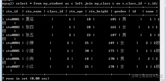 3、如果使用using关键字,那么对应的同名字段,最终在结果中只会保留一个。