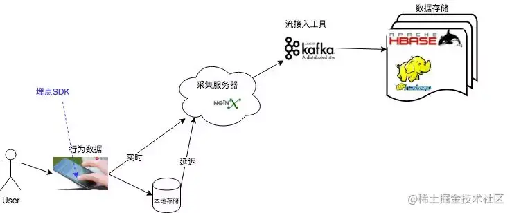 特别注意需要明确事件发生时间点、判别条件,这里如果遇到不清楚的,需要和开发沟通清楚,避免采集数据与理想存在差异。比如进入某个页面、点击某个按钮等,会自动触发记录和存储,然后这些数据会被收集并被传输到终端提供商,或者是通过后端采集用户使用服务过程中的请求数据。