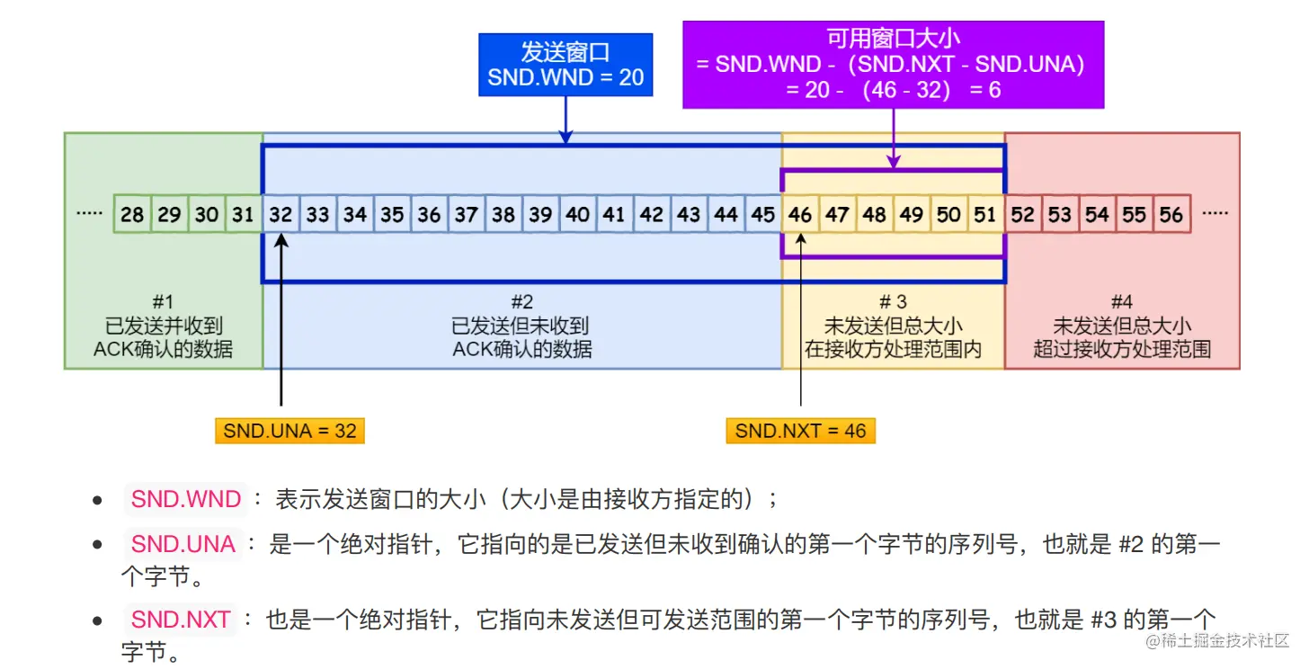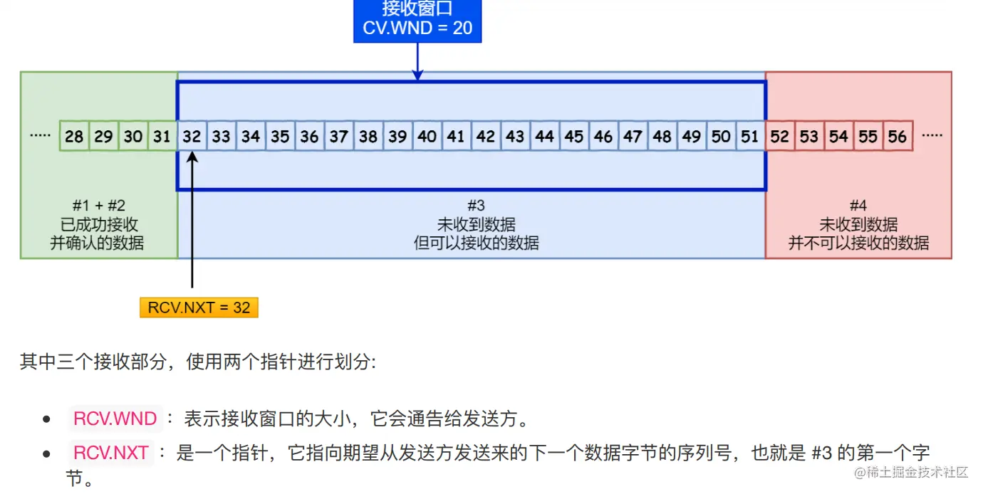 - 有一个窗口,TCP数据不是一个个发的,是每次发送多个