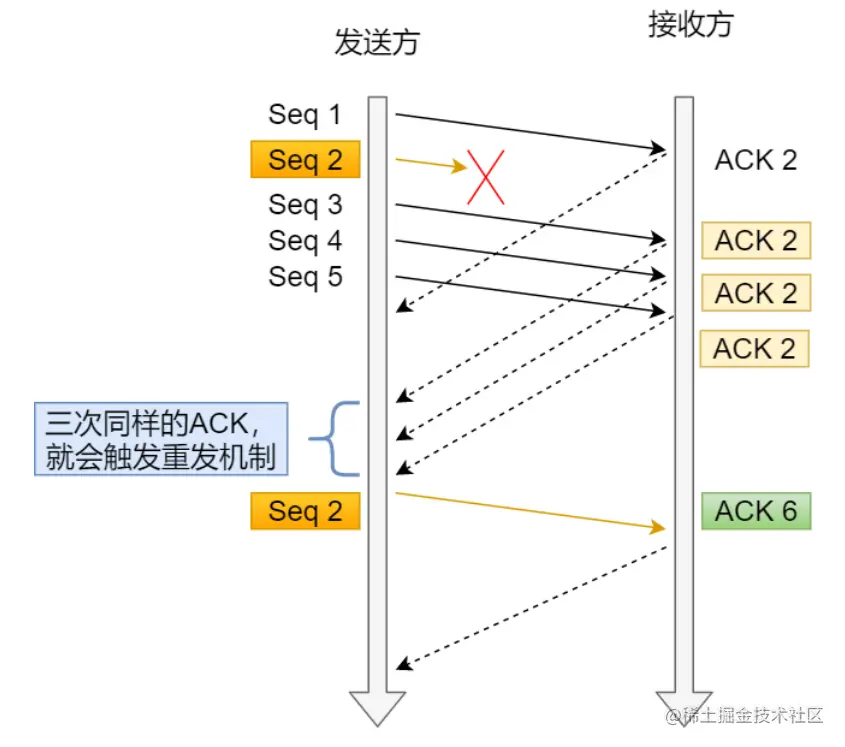 快速重传和快速恢复一般同时使用,快速恢复算法认为,你还能收到三个重复的ACK说明网络也每那么糟糕。