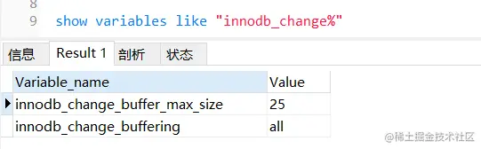 Change Buffer 的大小可以通过 innodb_change_buffer_max_size 参数来进行控制,默认的大小为 25,表示最多使用 25% 的缓存池空间,该值的最大有效参数为 50%。