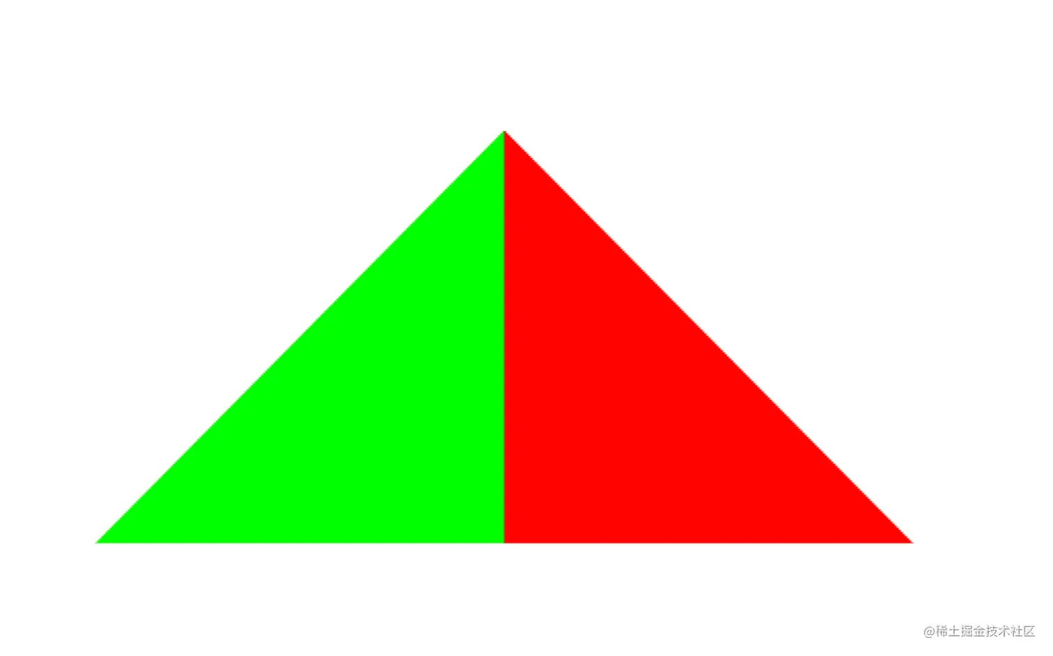 最终我们得到了如下的三角形,因为视口坐标是以左下角为原点,并且设置了viewport的宽和高为800,所以在小于400时为绿色,大于400为红色。
