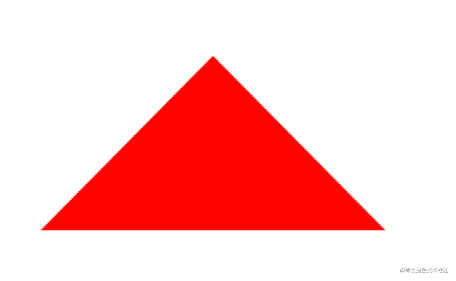 从光栅化后到片段着色器是很多个片段,每一个片段都是一个像素集,在片段着色器中,我们会对批量并行处理每一个像素,例如GLSL代码中,我们给每一个像素颜色设置为红色。最终得到如下一个三角形。