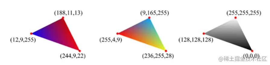 - 如果在顶点着色器中的顶点中设置例如颜色,法线等属性,在光栅化过程对基于顶点对各个像素点做线性插值。