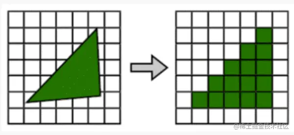 光栅化主要是将变换到屏幕空间的图元离散化为片元的过程。在屏幕的像素都是离散化的一个一个小块,而光栅化上一步传过来的图元基本都是线性的,所以在这一步我们需要将图元映射成一个个像素组成的片元。