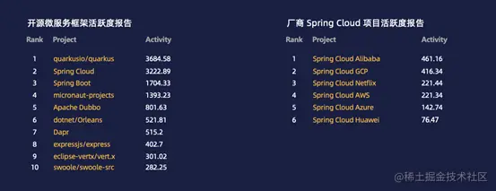 无论从 GitHub 的项目活跃度数据还是关注度数据来看,毫不夸张地说,Spring Cloud Alibaba 已经成为 Spring Cloud 框架中的事实标准了。