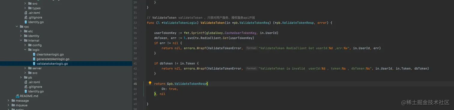 当我们在注册、登陆成功时候,用户服务会调用identity-rpc生成token,所以我们统一在identity-rpc中颁发、校验token,这样就不用每个服务都要写个jwt去维护。