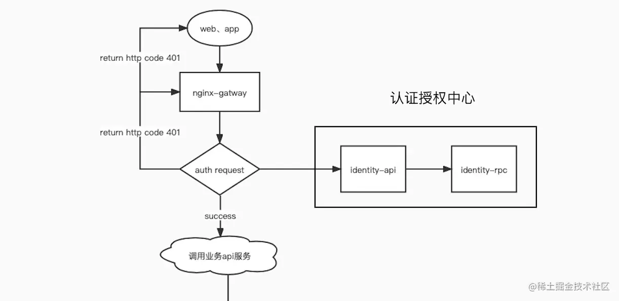 这样api就可以返回给nginx的auth模块是否失败,如果失败auth会直接返回给前端http code 401(所以你们前端应该是先判断http状态码>=400全部异常,再判断业务错误码) , 如果成功直接访问后端服务了拿到数据直接返回给前端展示