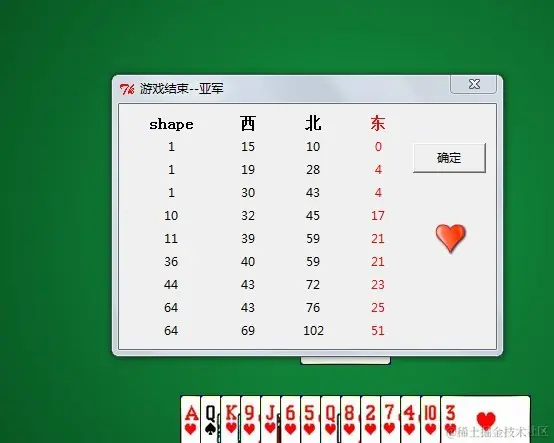 4.统分阶段:一轮游戏过后,会弹出得分表,显示玩家和三名电脑每轮积分和总积分,并显示