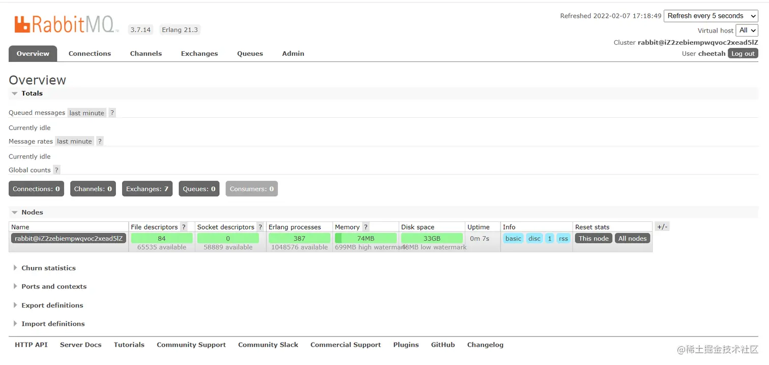 其中 cheetah 为用户名,123456 为密码,可自定义。