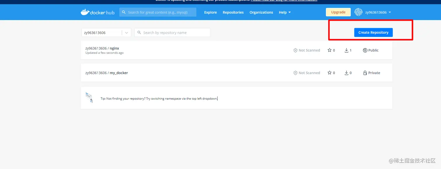 docker tag mynginx:v1.0 zy963613606/nginx:v1.0