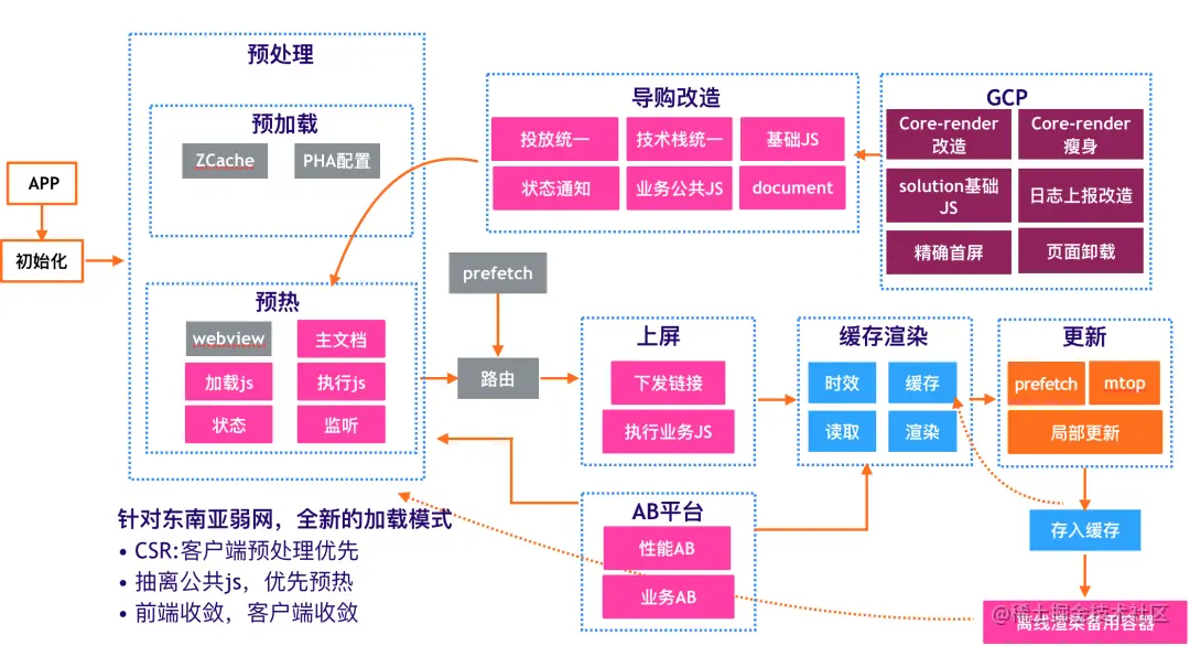 在过去一年里,Lazada容器团队深耕H5容器优化,在面对线上弱网用户占比高,低端机型分布广等情况下,我们采用预渲染方案针对性优化了大促会场页面,首创性运用预热方案优化日常GCP页面和ICMS页面,同时对页面数据进行预取,静态资源提前缓存等方案,对头部H5页面流量业务进行深度优化,最终提升H5业务的用户体验及业务转化。