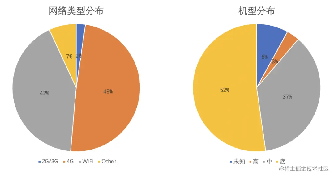 从上图可以看到线上大盘用户移动网络占比高,低端机型占比大,特别是印尼用户,移动网络稳定性情况更差,低端机型占比突出。那么针对低端机型以及弱网用户的优化成为我们重点攻坚方向。