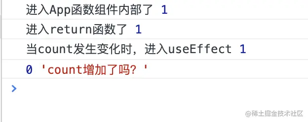 - 此时我们在handleClickAdd内部继续打印console.log(count, "count增加了吗?"),可以看到count的值是没有变化的