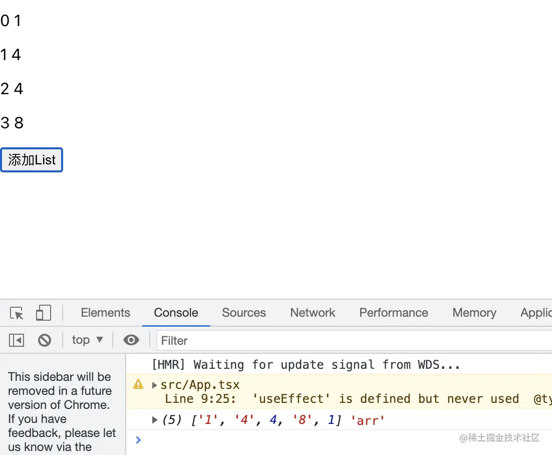const [arr, updateArr] = useState<any>(['1','4',4,'8']);