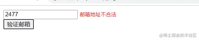 <input type="text" id="email" /> <span id="emailError" style="color: red; font-size:12px;"></span><br> <input type="button" value="验证邮箱"id="btn"/>