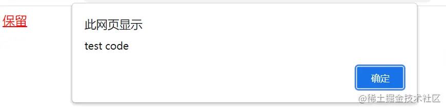<a href="javascript:void(0)" onclick="window.alert('test code")"> 保留</ a>