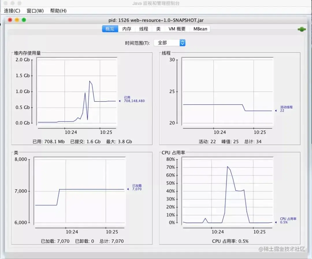 启动时间大约10秒左右:Started Application in 10.153 seconds (JVM running for 10.915)