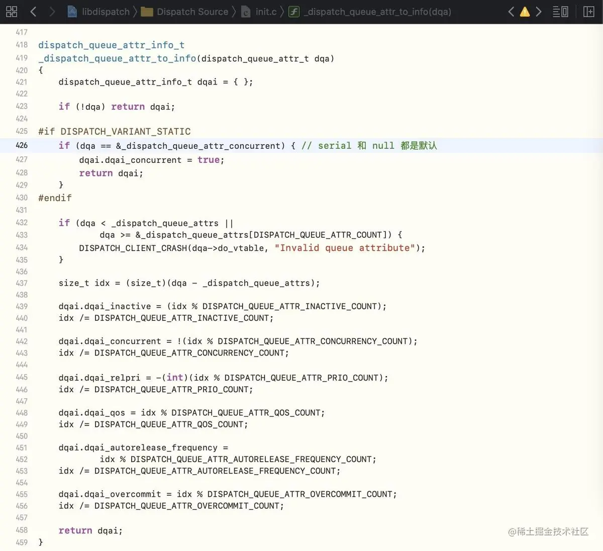 _dispatch_queue_init方法,队列类型是dispatch_queue_t,并设置队列的相关属性【第五步】通过