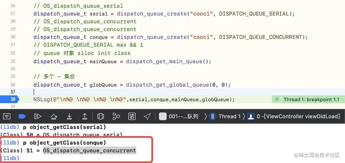DISPATCH_VTABLE拼接队列名称,即vtable,其中DISPATCH_VTABLE是宏定义,如下所示,所以队列的类型是通过OS_dispatch_+队列类型queue_concurrent拼接而成的串行队列类型:OS_dispatch_queue_serial,验证如下