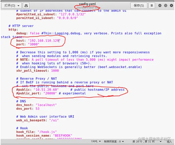 Beef的配置文件在 /usr/share/beef-xss/config.yaml