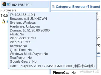 再看beef,有了主机A的信息了,hook成功了(摸不着头脑???)