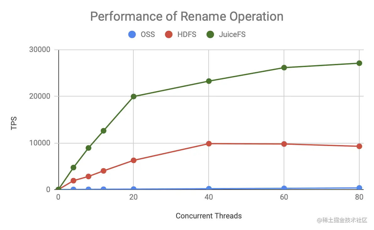 - OSS 非常慢,尤其是 Rename 操作,因为它是通过 Copy + Delete 实现的。本文测试的还只是单个文件的 Rename,而大数据场景常用的是对整个目录的 Rename,差距会更大。