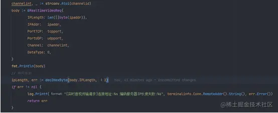 log.Printf("[实时音视传输请求]连接地址:%s 编码服务器IP长度失败:%s", terminalinfo.Conn.RemoteAddr().String(), err.Error())
