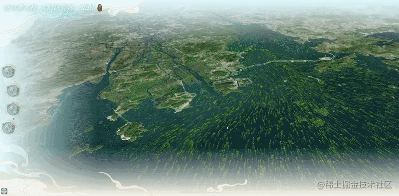 HT 引擎可支持对港珠澳大桥 360 度全景浏览。港珠澳大桥连接粤港澳三地,全长 55 km,是目前世界上最长的跨海大桥。需综合考虑大桥高温、高湿、高盐、多风的外海建设运营环境、桥位航线密集和阻水率要求。HT 三维引擎可建立三维水流、风势数学模型,模拟大湾区水流、风势运动的三维特征,实现虚拟多场景观测大桥重点环境趋势。从而预测潮流动力较强的大潮期,并为进一步研究极端天气条件下大湾区台风浪过程提供基础。