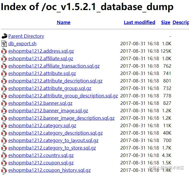 我们可以看到有很多页面都包含了敏感信息。老师找到了一个数据库备份的页面。