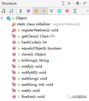 大家都知道Object是所有类的父类,任何类都默认继承Object。理论上Object类是所有类的父类,即直接或间接的继承java.lang.Object类。由于所有的类都继承在Object类,因此省略了extends Object关键字。该类中主要有以下方法:
