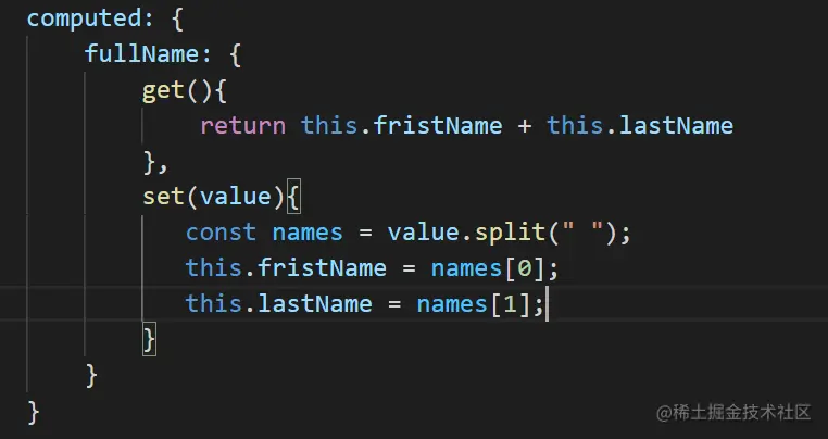 计算属性在大多数情况下,只需要一个getter方法即可,所以我们会将计算属性直接写成一个函数。但是,如果我们确实想设置计算属性的值呢?这个时候我们也可以给计算属性设置一个setter的方法;
