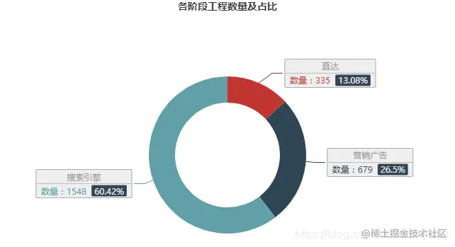 环形的中心部分是空的,可以放置:标签,整体数值,平均值,图表主题或其他内容。
