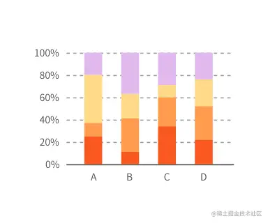 要注意的是,纵轴是百分比,最大值为100%,每条柱形都等高,都是100%