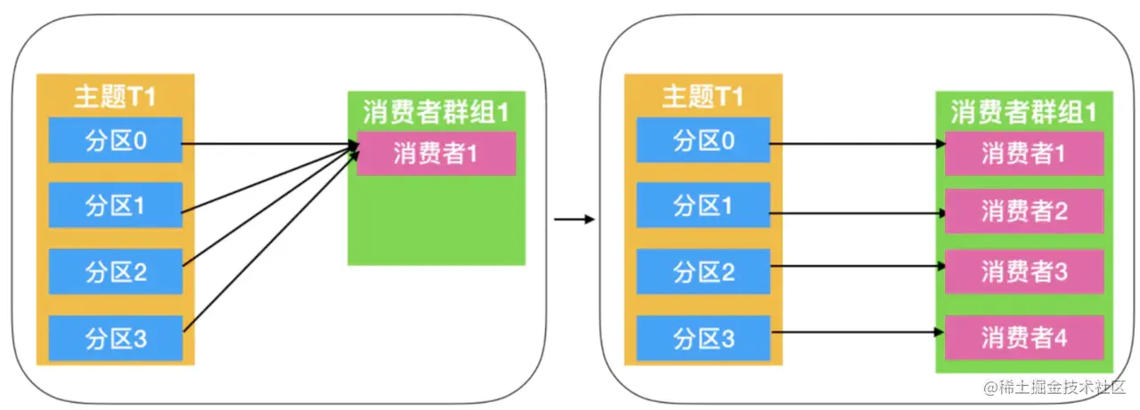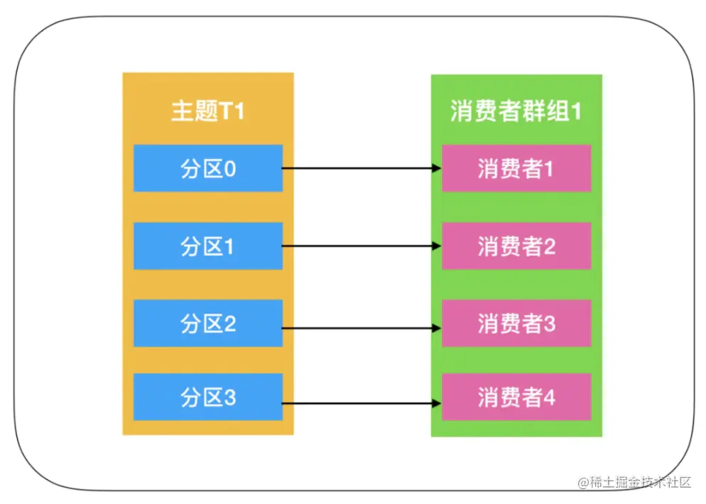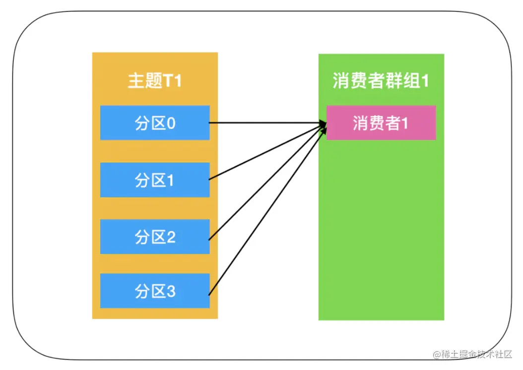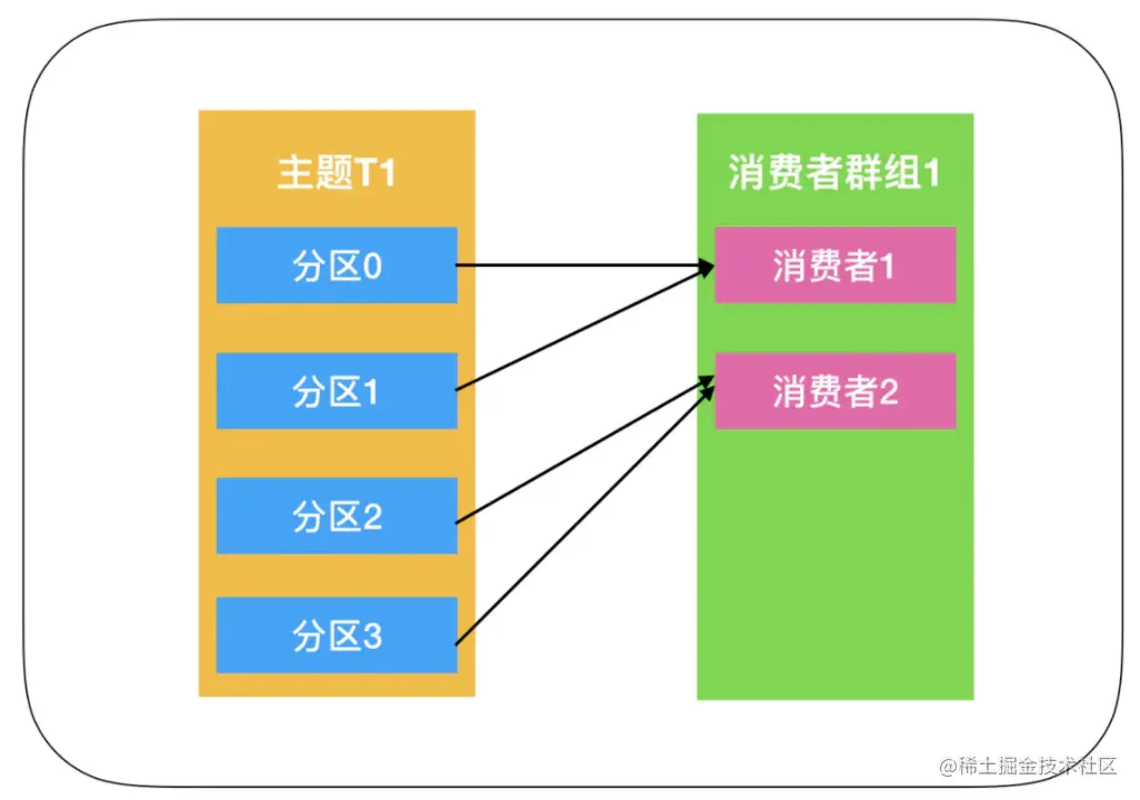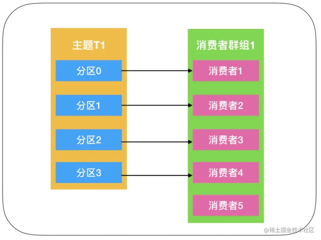当然也可以消费者个数小于队列个数,只不过不太建议。如下图: