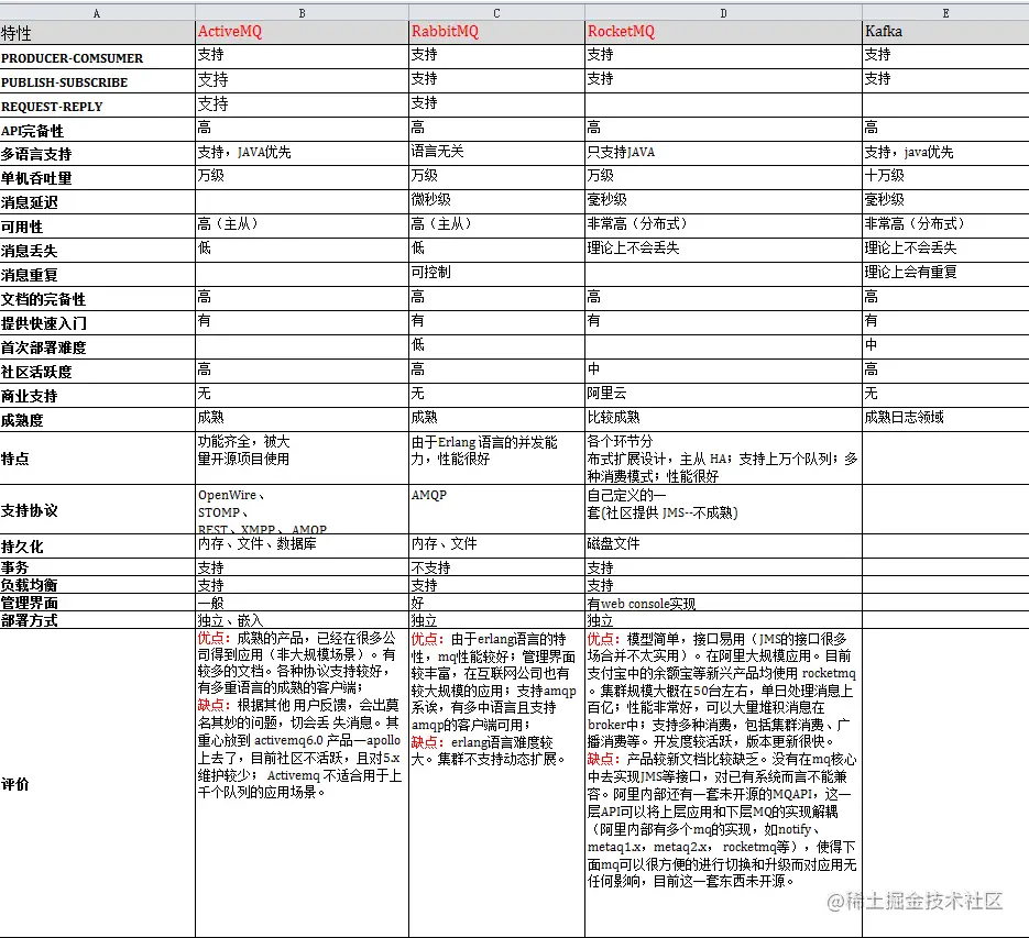 下图是从网上摘抄过来的,可以看到主流MQ的对比: