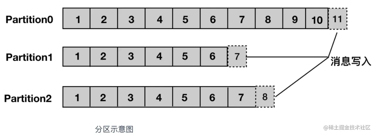 - Queue:队列,在Kafka中叫Partition。(每个Queue内部是有序的,在RocketMQ中分为读和写两种队列,一般来说读写队列数量一致,如果不一致就会出现很多问题。)
