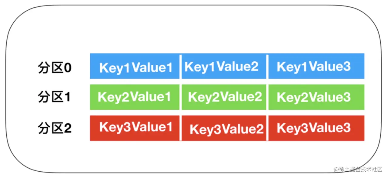 - 消息:Kafka 中的数据单元被称为消息,也被称为记录,可以把它看作数据库表中某一行的记录。
