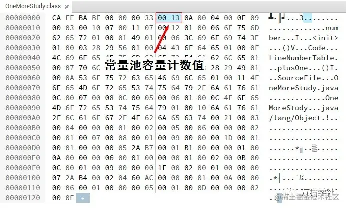 紧跟着主版本号的就是常量池,它可以理解为Class文件的资源仓库,也是Class文件结构中与其他数据项关联最多的数据类型。因为在常量池中的常量数量是不固定的,所以首先有一个u2类型的数据,表示常量池容量大小(constant_pool_count)。
